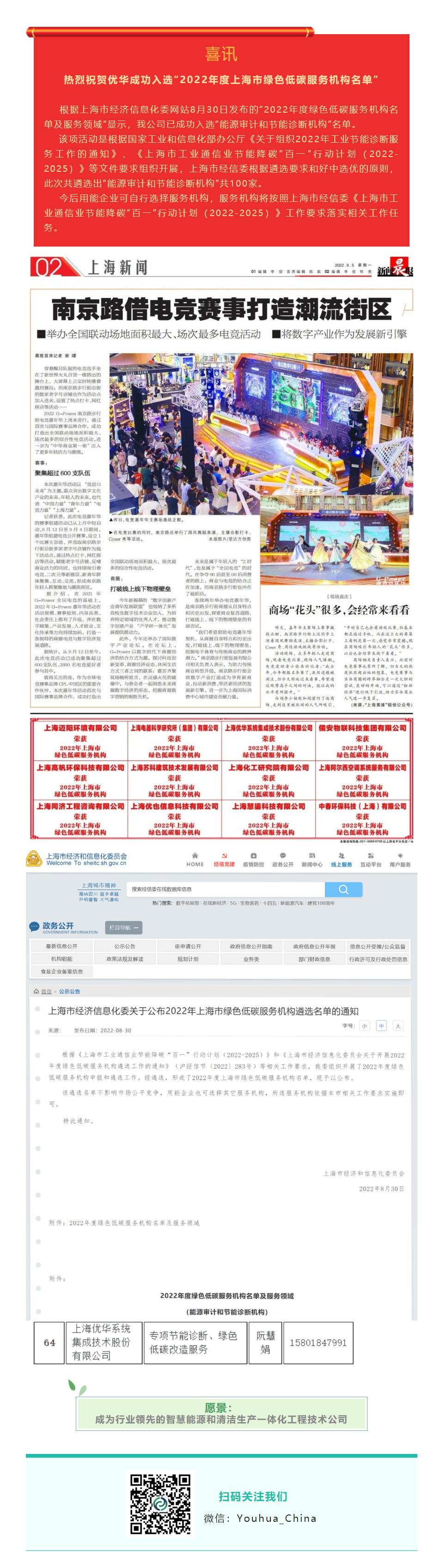熱烈祝賀優(yōu)華成功入選“2022年度上海市綠色低碳服務機構名單”